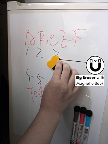 【Magnetic】: The whiteboard can be directly attached to the surface of iron or magnetic objects like refrigerators; it can also absorb magnetic iron, including 3 colored pencils and eraser with magnetic.