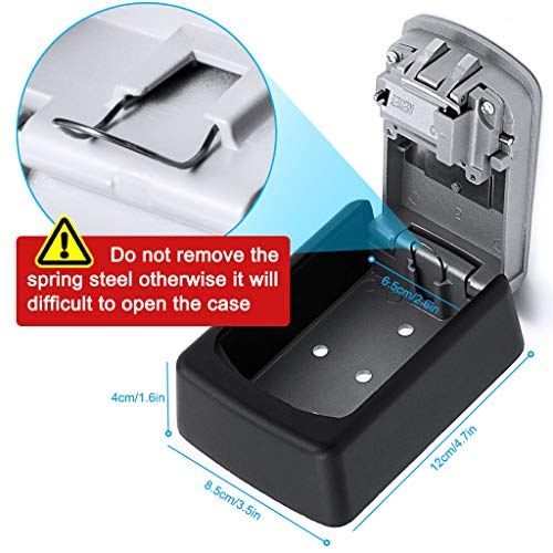 🏡【Hoge Kwaliteit Roestvrij Staal】Sterke constructie van zinklegering met 4 aan de binnenkant gemonteerde krachtige schroeven, die de sleutelkast met code een hoge weerstand tegen hameren, zagen en stemmen geeft. Geschikt voor buiten. Buitenmaten: 12 x 8,5 x 4 cm. De sleutelsafe heeft een weerbestendige, glijdende afsluitafdekking om de combinaties schalen tegen de elementen te beschermen.