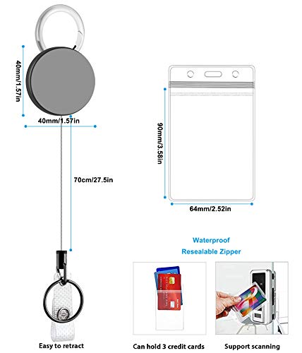 Complete set: uw ID altijd binnen handbereik met de ID-kaarthouderset, bestaande uit 2 verticale duidelijke ID-kaarthouders en 2 retractable badge reel. Voldoe gewoon aan uw behoeften in één aankoop. Binnenafmetingen van de doorzichtige kaarthouder zijn 91*64mm, elk kan gemakkelijk 3 credit card-formaat kaarten bevatten.