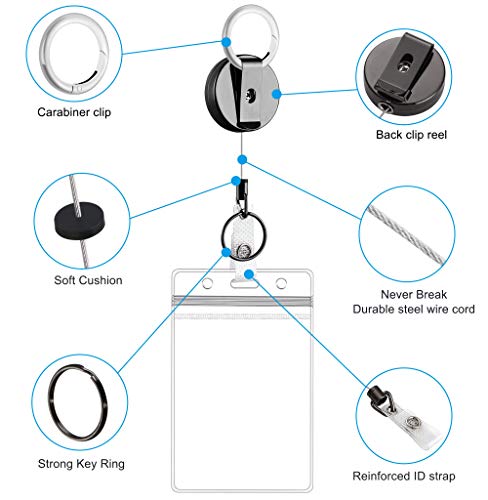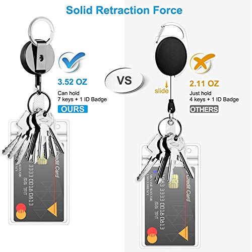 Heavy-duty intrekbare haspel: het gebruik van een stalen scheurvast trekkoord maakt het super slijtvast, solide en stevig, veel sterker dan nylon koord van generieke intrekbare sleutelhanger. getest onder meer dan 100.000. Wordt geleverd met een sleutelring en ID-riem die perfect is als een intrekbare sleutelhanger en badge houder.