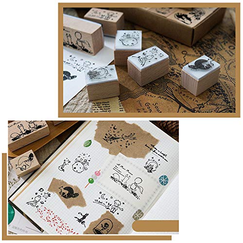 Little Prince houten rubberen stempelset, levendige patronen kunnen worden gebruikt met boek “Le Petit Prince” om klassieke zinnen te markeren en de leesinteresse te verhogen.