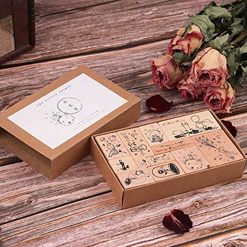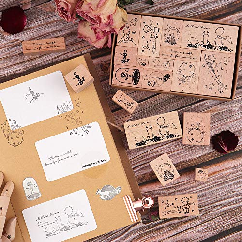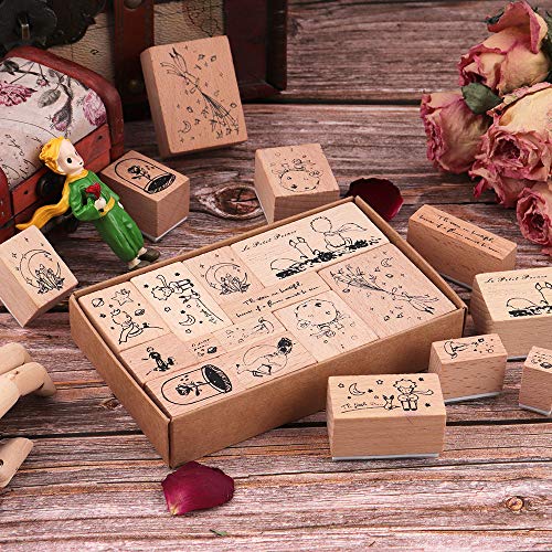 Houten rubberen stempels, NogaMoga 12 stuks kleine prins rubberen stempel met 11 maten, decoratieve rubberen afdichting…