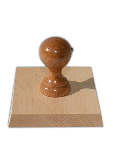 Hoogwaardig rond stempellichaam van beukenhout met markeringspunt voor uitlijning aan het handvat (ca. 105 x 105 mm, H 80 mm)