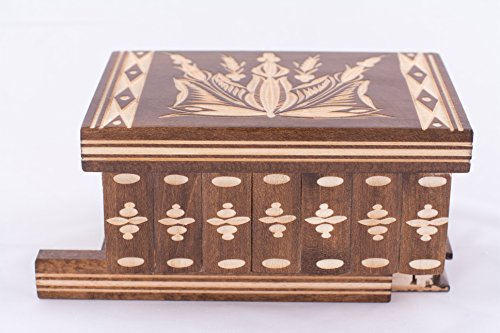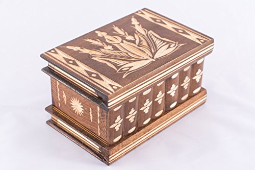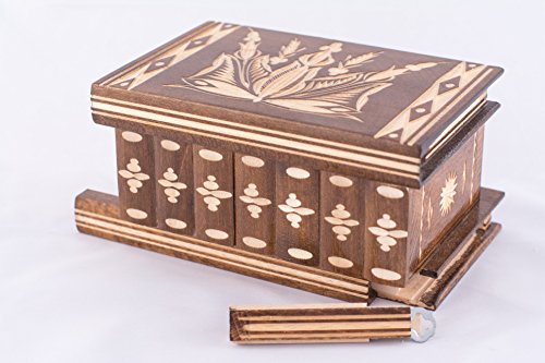 Aangezien dit een exclusief handgemaakt en gesneden sieradendoosje is, zullen je versteld staan over de fijne details en patronen op elk doosje. Het snijwerk aan de bovenkant en de zijkanten van dit geheime doosje zijn uniek en niet herbruikbaar. Een mooie schatkist van grote sentimentale waarde.