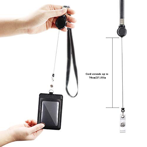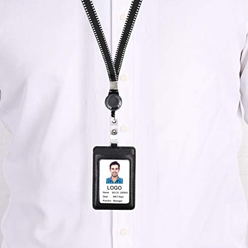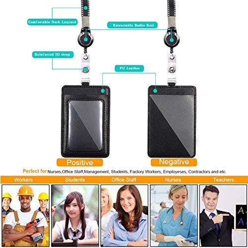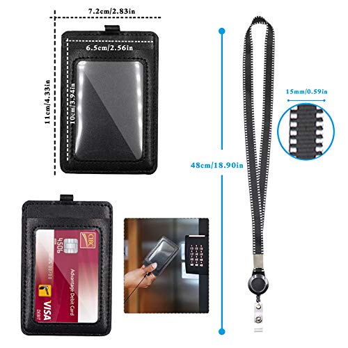 Specification: Mczcent Zwarte Badge Houder, Dubbelzijdige Verticale PU Lederen ID Badge Kaarthouder met Intrekbare Lange Lanyard 1…