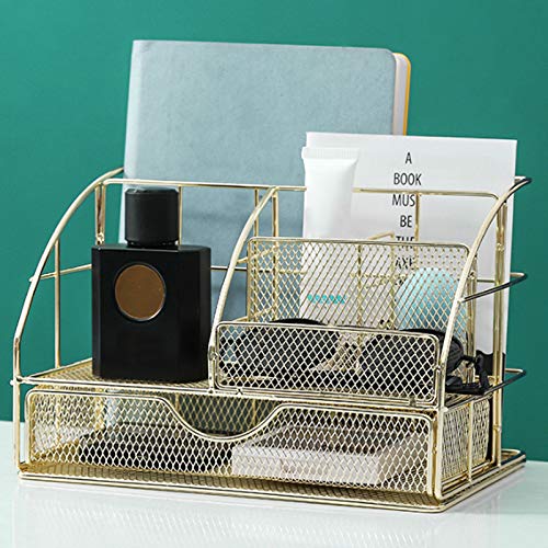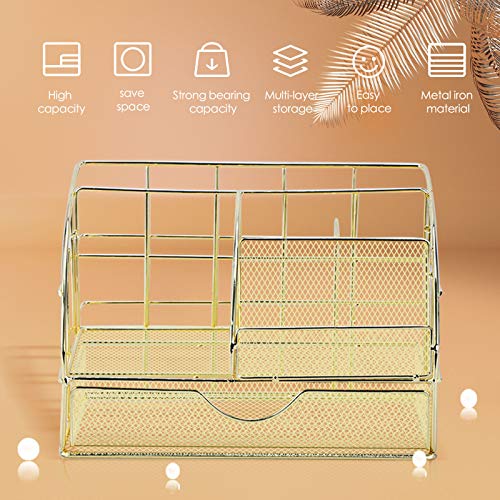 Eenvoudig schoon te maken: Desktop opbergdoos, gemaakt van hoogwaardig ijzer met gouden coating op het oppervlak, Mooi stijlvol, netachtig onderoppervlak, stabiele plaatsing, niet gemakkelijk te verzamelen stof, gemakkelijk te organiseren, gemakkelijk schoon te maken.