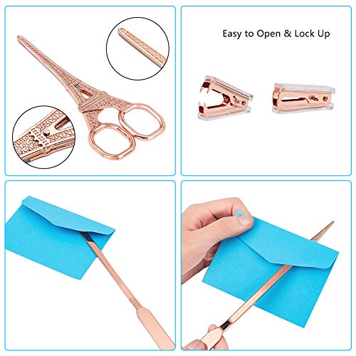 Specification: NBEADS Rose Gold Office Stationaire Kit, 4 Types Nietmachine Remover Schaar letter Opener en Nietmachine…