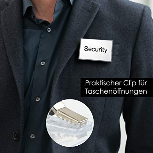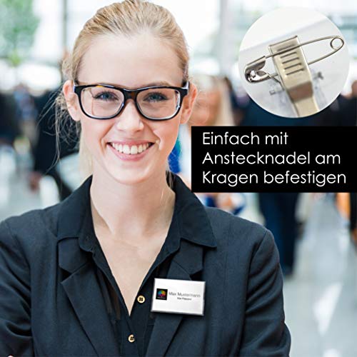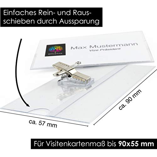 OfficeTree Naamplaatjes met houderclip en steek-naald – kunststof naambordje voor visitekaartjes tot 90 x 55 mm…