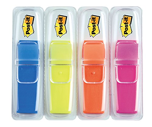 Omvang levering: 4 x zelfklevende marker index Mini van het merk Post-it / zelfklevende notities set (11,9 x 43,2 mm) elk 35 vellen per blok in blauw, geel, oranje & roze/verpakt in praktische post-it dispenser