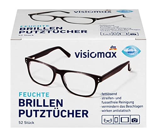 Brillen poetsdoeken, vocht- en vetoplossend voor een streepvrije reiniging, 156 stuks, 3-pack (3 x 52 stuks), voor alle brillenglazen van glas en kunststof.