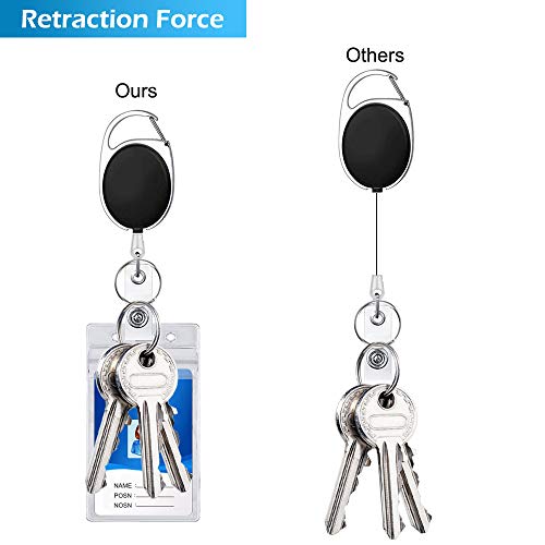 HEAVY DUTY: Het Max laadgewicht van het intrekbare snoer is 3,5 oz of 7 sleutels, die niet naar beneden glijden. Strek het binnen het gewichtsbereik uit om te veel spanning te voorkomen.