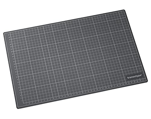 Hoogwaardige snijmat van Transotype groen/zwart, afmetingen: 60 x 45 cm. Voor nauwkeurige en zonder sporen uitsneden, dubbelzijdig bruikbaar, zelfsluitend. Met dubbelzijdig 10/50 mm indeling en onderlaag, fijn raster. Nauwkeurige en spoorloze sneden lukken door de 3-laagse “sandwich-Soft”-constructie met harde, 3 mm dikke kern. De matten worden voornamelijk als snijonderlegger gebruikt, maar kunnen ook worden gebruikt als bureauonderlegger of muismat. Ze zijn onmisbaar voor de bescherming van tafeloppervlakken en de messcherpte van de snijmessen.