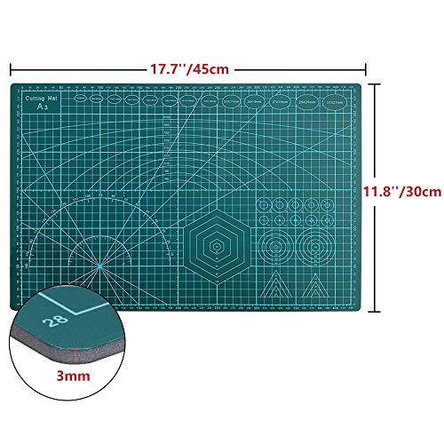 ✦【Dubbelzijdige Zelfherstellende Snijmat】 A3 zelfherstellend snijmat is gemaakt van speciale materialen met goede zelfherstellende eigenschappen en kan aan beide zijden worden gebruikt. Nadat de incisie is gesneden, zal de oppervlaktelaag van de zelfherstellende snijmat samen krimpen vanwege de elasticiteit, de incisie van de snijmat zal vlak zijn. ambachtelijke snijmat a3 pvc