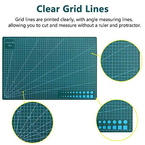 ✦【Duidelijke Rasterlijnen】 Er zijn verschillende rasterlijnen en hoekmeetlijnen aan beide zijden van de snijmat. De rasterlijnen van de snijmat zijn duidelijk geprint, zodat u kunt knippen en meten zonder linialen en gradenbogen. kunst snijmatten self healing cutting mat