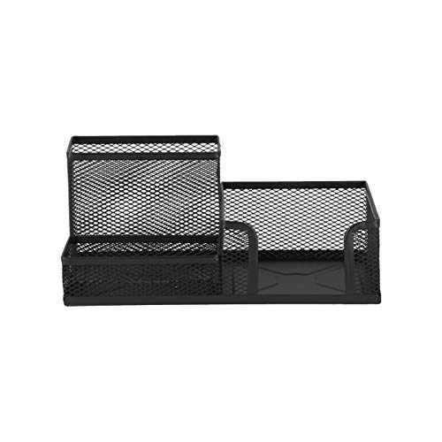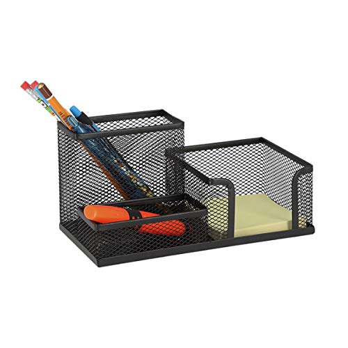 Pennenhouder van metaaldraad, gelakt mesh Line – 1 vak voor pennen – 1 vak voor kleine kantoorapparaten (gummetjes, paperclips, enzovoort) – 1 vak voor notitieblaadjes – afmetingen: 205 x 103 x 98 mm – kleur: zwart.