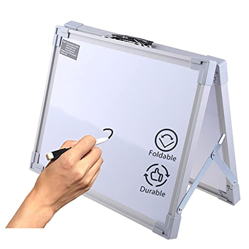 YOURPAI Witte Desktop, Magnetische Desktop Opvouwbare Whiteboard Mini Ezel Dubbelzijdig met Houder voor Kid Wit