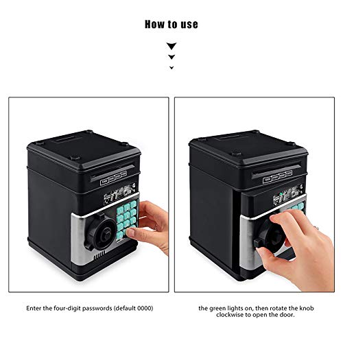 [Digital Piggy Bank met grote capaciteit] == Deze grote spaarpot geeft u voldoende ruimte om uw geld te verzamelen en op te slaan. Bescherm de persoonlijke spullen van kinderen, de ATM-bank voor kinderen kan munten, papiergeld of andere belangrijke items opslaan, waardoor uw kinderen een goede gewoonte ontwikkelen om geld te besparen.